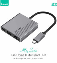 The Amaze Aluminium Alloy 3-in-1 Type-C hub is a compact and versatile accessory designed to expand the functionality of devices with a USB-C port. Typically made with a durable aluminum alloy, it has a sleek look and good heat dissipation, making it a popular choice for professionals and tech enthusiasts alike.